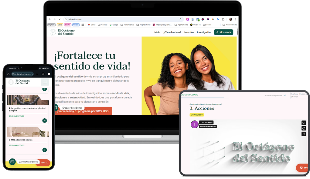 Mi Sentido está disponible en celular y computador, para que puedas avanzar en tus módulos, ejercicios y acompañamiento sin importar dónde estés.